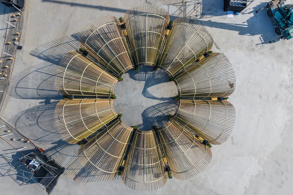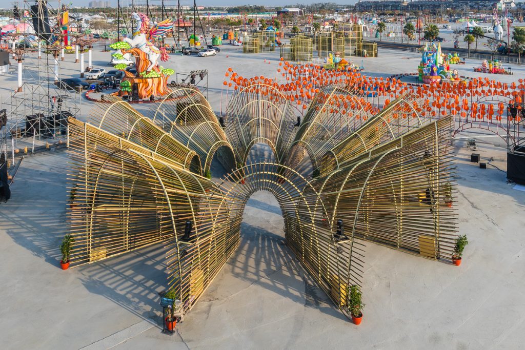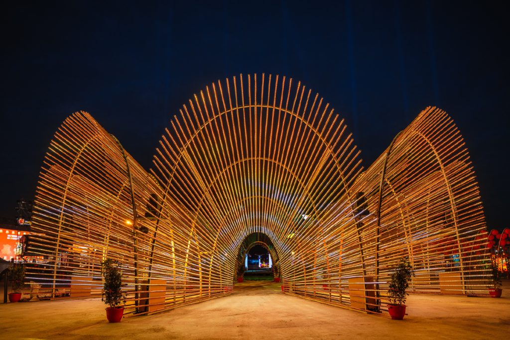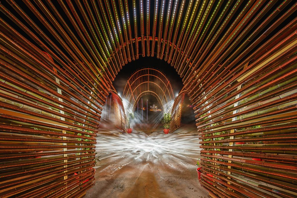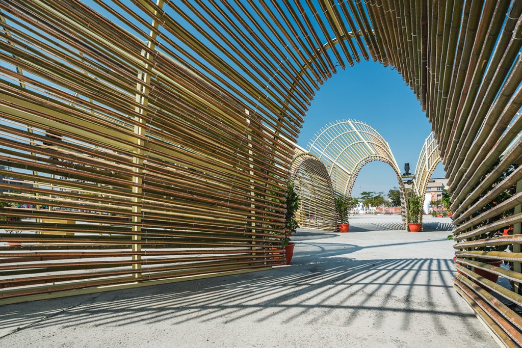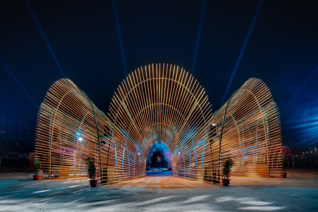 Among the original forest, we were independent beings, but we gazed up at the same sky. Breath of Light uses bamboo and steel to construct an encircling realm. The interwoven arcs rise like towering ancient trees standing quietly in the mountains—gentle yet strong, embracing those who enter. Stepping inside, the shifting light and shadow stretch, break, and intersect with the passing of time, tracing the rhythm of nature’s breath and reflecting one’s own silhouette. As the light gradually extends, the rays that fall through the gaps become a guide; figures that appear and disappear— illusory yet real —reveal that the light within oneself is the direction forward. Here, the body and the space respond to each other. With every inhale and exhale, amid the interplay of presence and absence, one senses their own existence, as well as a genuine connection with nature, with others, and with the world above and below.