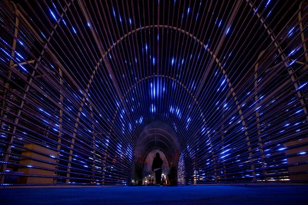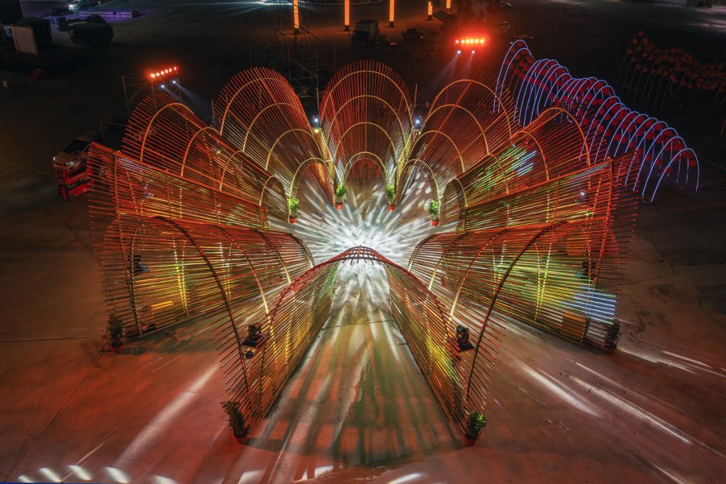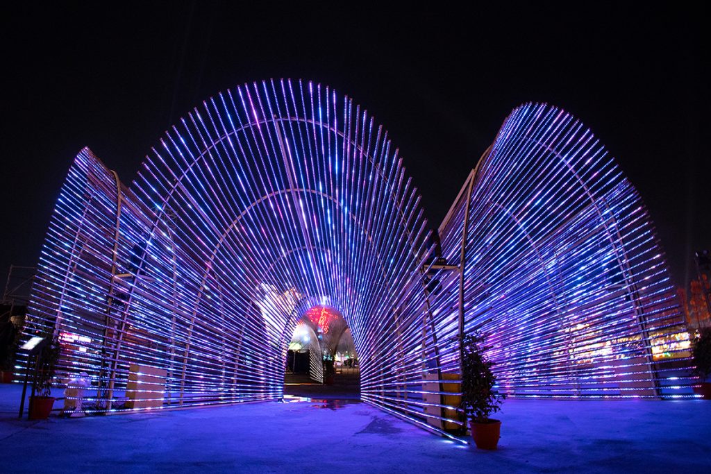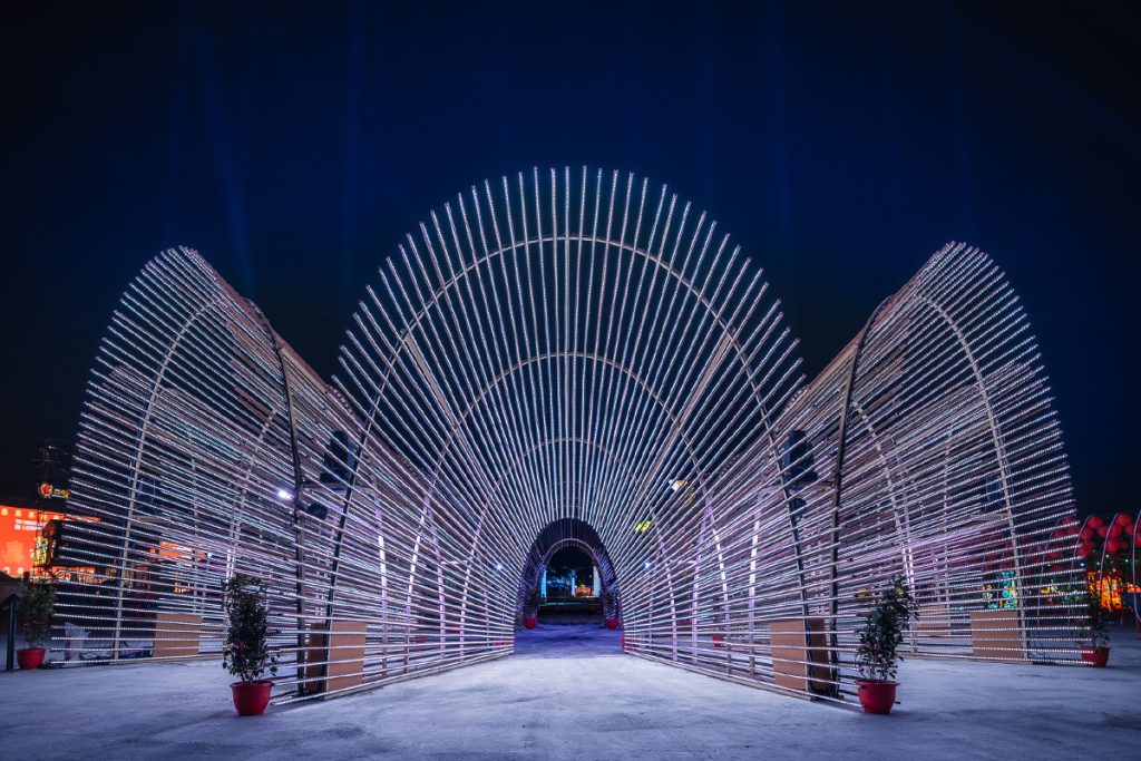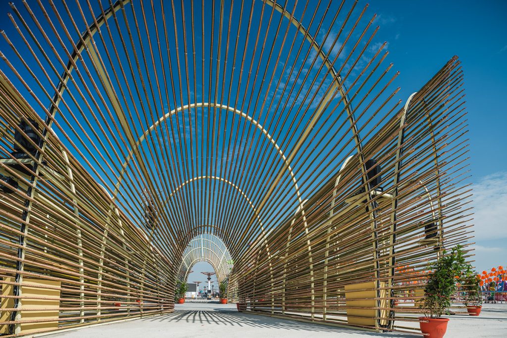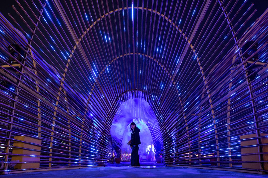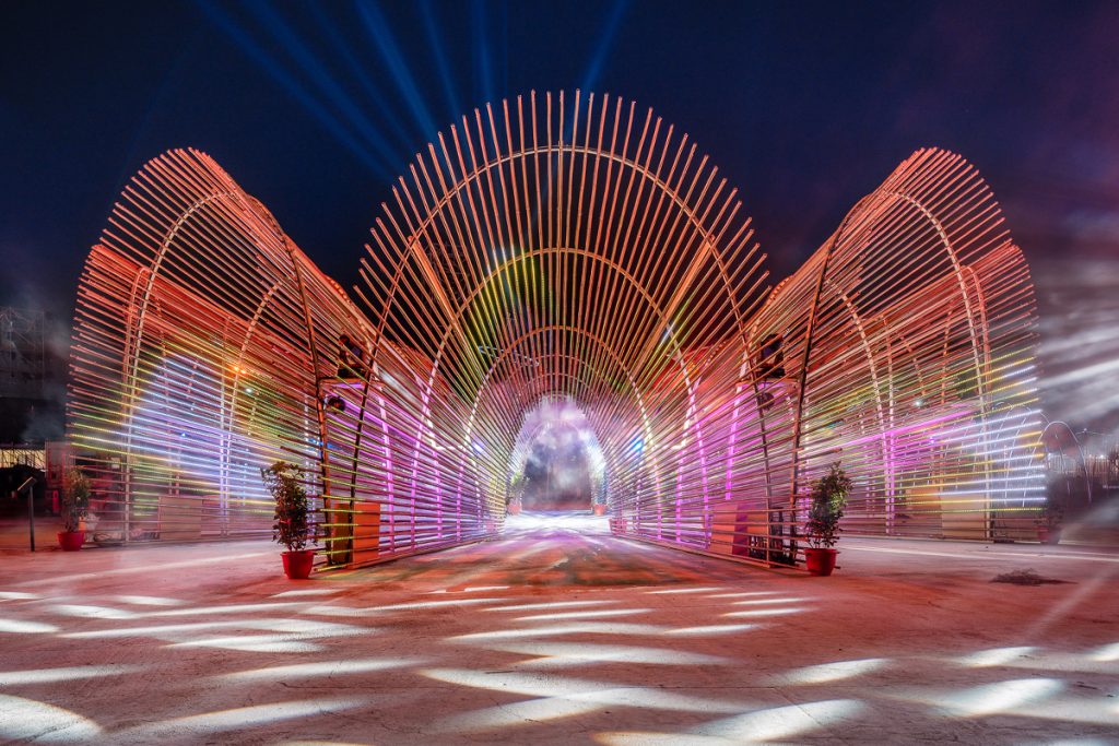 Among the original forest, we were independent beings, but we gazed up at the same sky. Breath of Light uses bamboo and steel to construct an encircling realm. The interwoven arcs rise like towering ancient trees standing quietly in the mountains—gentle yet strong, embracing those who enter. Stepping inside, the shifting light and shadow stretch, break, and intersect with the passing of time, tracing the rhythm of nature’s breath and reflecting one’s own silhouette. As the light gradually extends, the rays that fall through the gaps become a guide; figures that appear and disappear— illusory yet real —reveal that the light within oneself is the direction forward. Here, the body and the space respond to each other. With every inhale and exhale, amid the interplay of presence and absence, one senses their own existence, as well as a genuine connection with nature, with others, and with the world above and below.