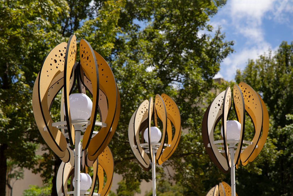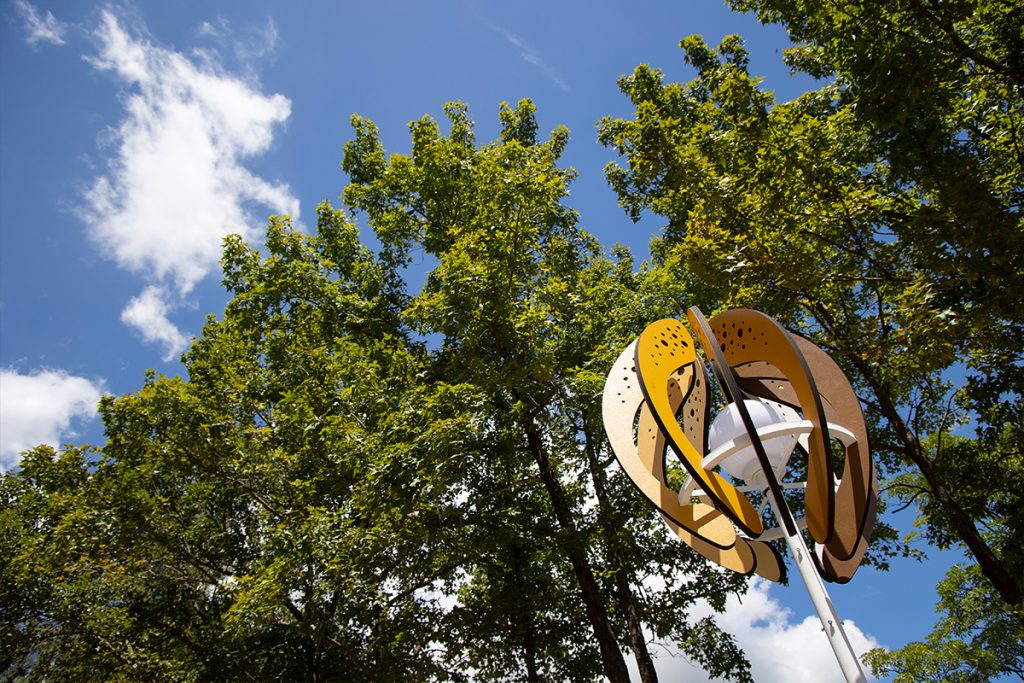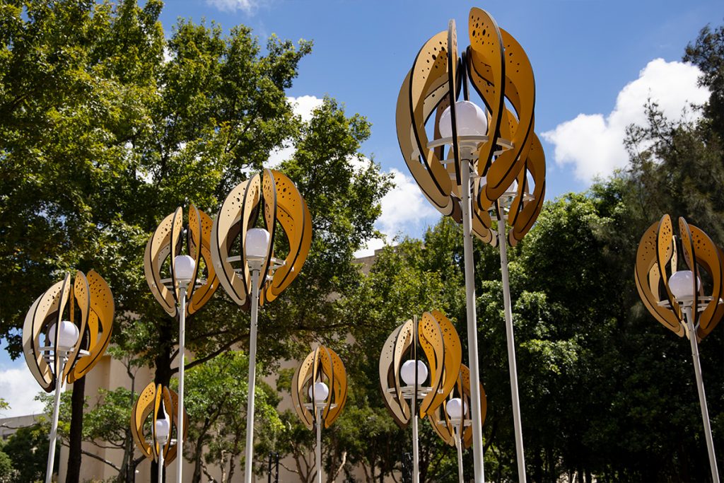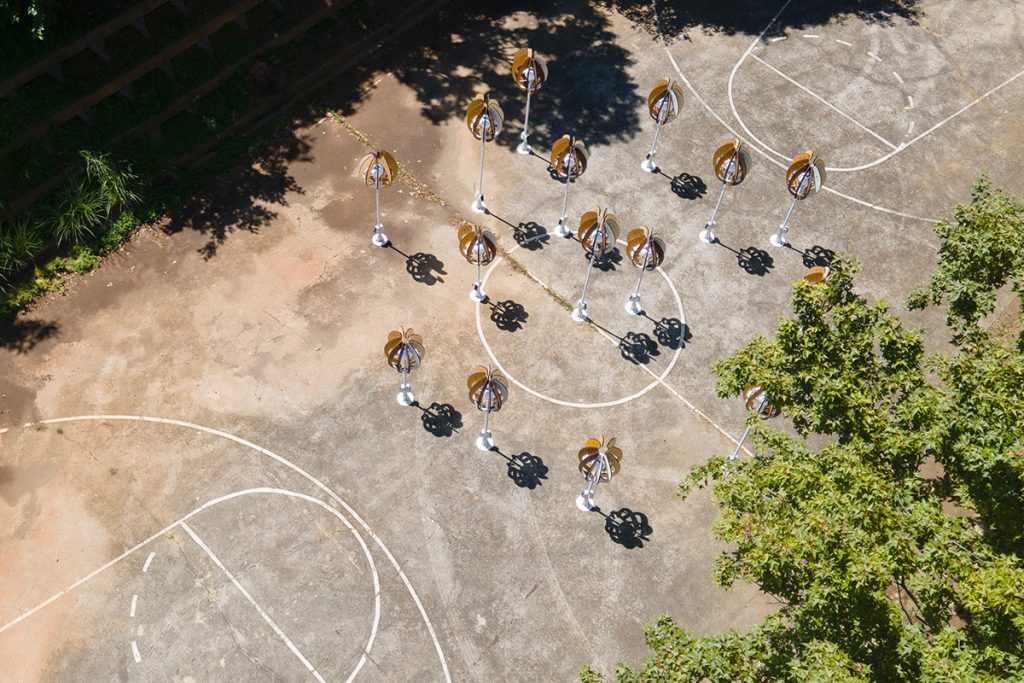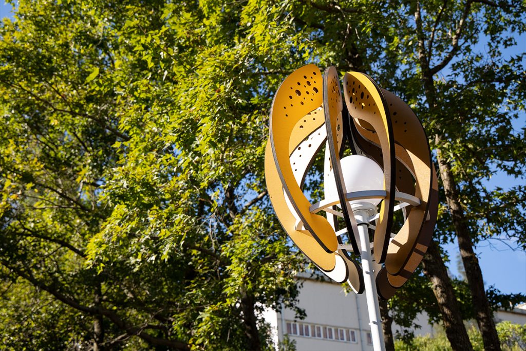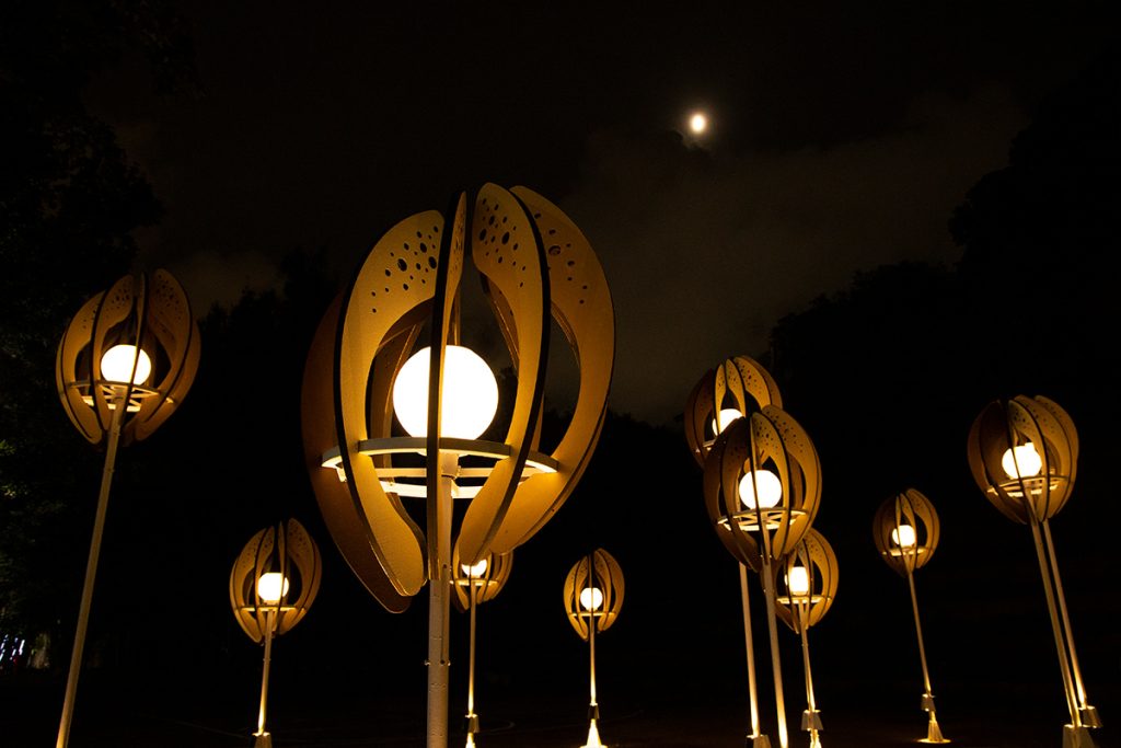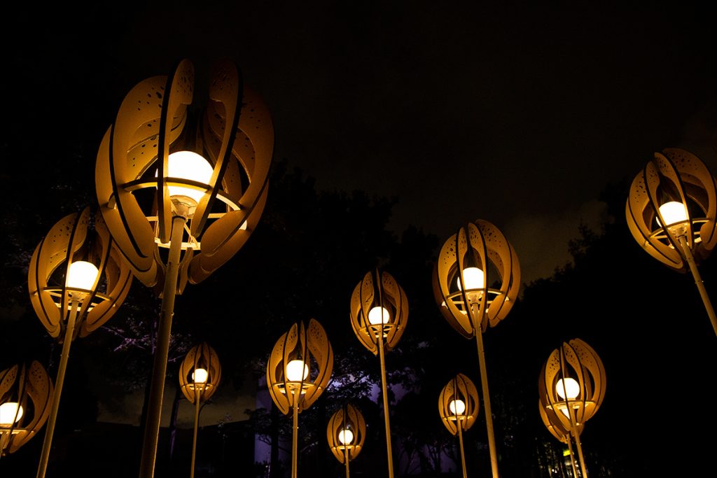 The work “Seed of the Brews” transforms the image of brew’s rice. Wrapping the white-core of rice with rounded arcs, the color shows the process of rice from harvesting to shelling and polishing into polished rice. From planting to harvesting, from cooking to fermentation, from filtration to clarification, from maturation to blending. The brewing process is like a seed, needing to be cultivated and grown over time. And the pure lightpoints exude energy, connecting the nourishment given by this land.